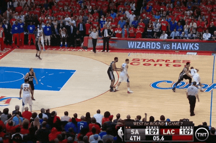 终场前6.8秒,天保投绝保罗面对丹尼-格林和邓肯的罗季补防,打板抛投命中绝杀,后赛率领球队晋级西部半决赛。抢抛
