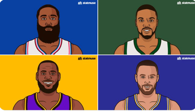 现役球员单场得分50+场次,哈登23场领跑榜单